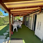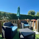Situada a 4 km de la Playa de La Palmyre, la Spacious Mobil Home 42M2 - 3Bed-2Bath-Clim Siblu Les Charmettes Les Mathes invita a los huéspedes a relajarse en una terraza.